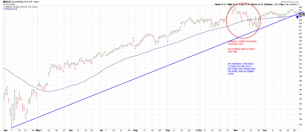 A daily MAGS shows they “overbalanced” price in the correction from their October 29 record high to their November 21 low.