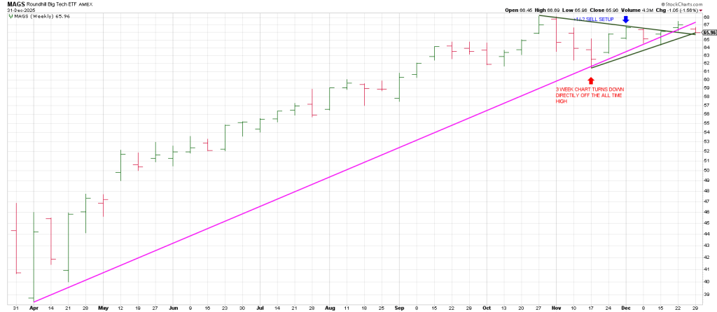Right off the top the MAGS turns its 3 Week Chart down for the first time since the April low.