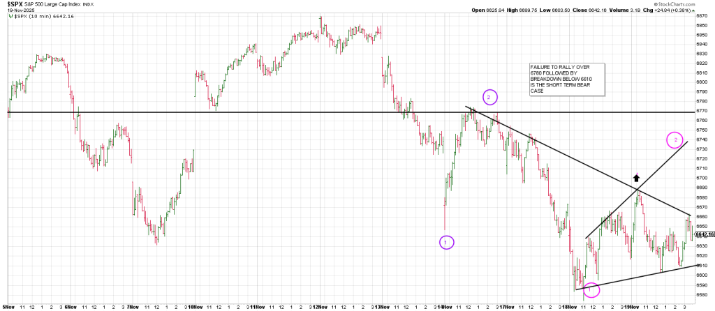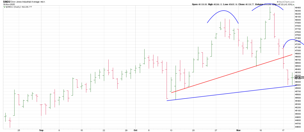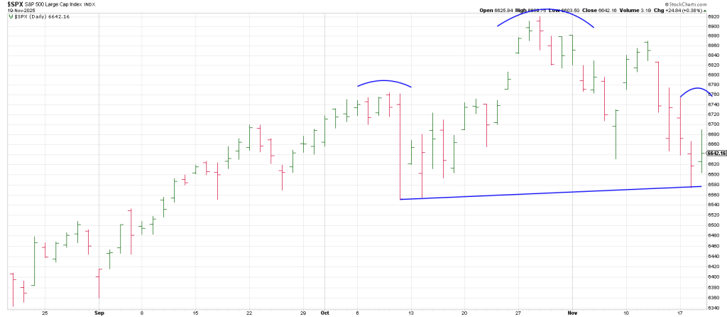 But it will take a close below the October10 low of 6551 to confirm that October 29 was the high.