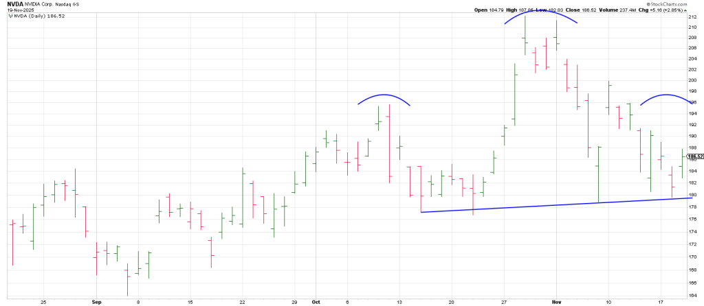 The internal deterioration juxtaposed against the All In frenzy has the whiff of across the board Right Shoulders in the SPX, the QQQ, the DJIA and NVDA.