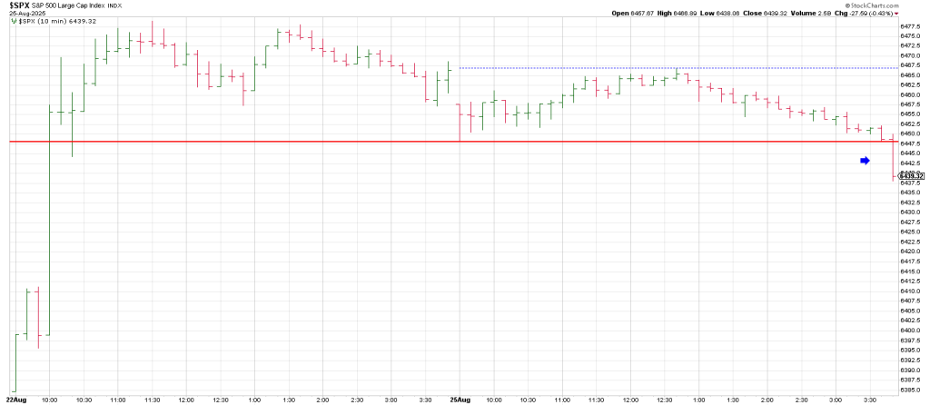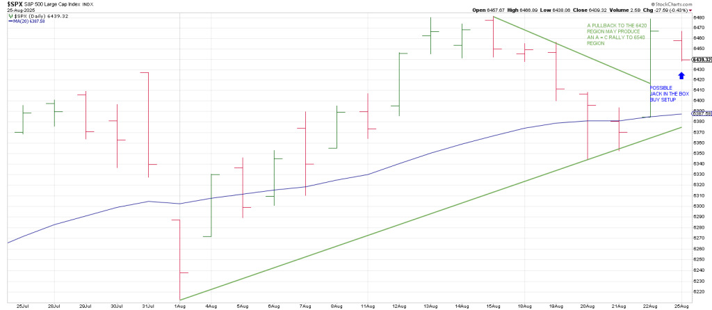 In sum, if the SPX pulls back to the 6420 region (where it was before Jackson Hole) which ties to the 50 hour ma and a rally shows up a Measured Move projects to around 6540.