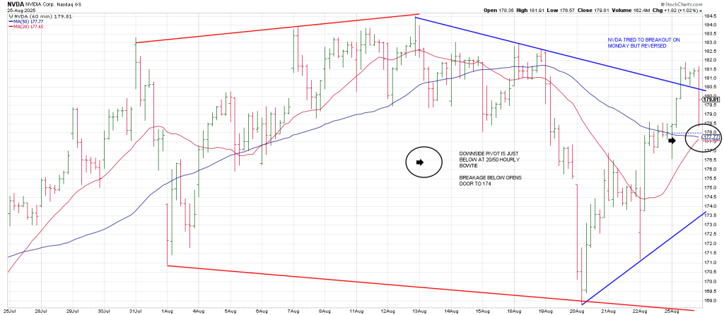 An hourly 3 point trend line to the 175 strike would play out should NVDA snap the Bowtie.