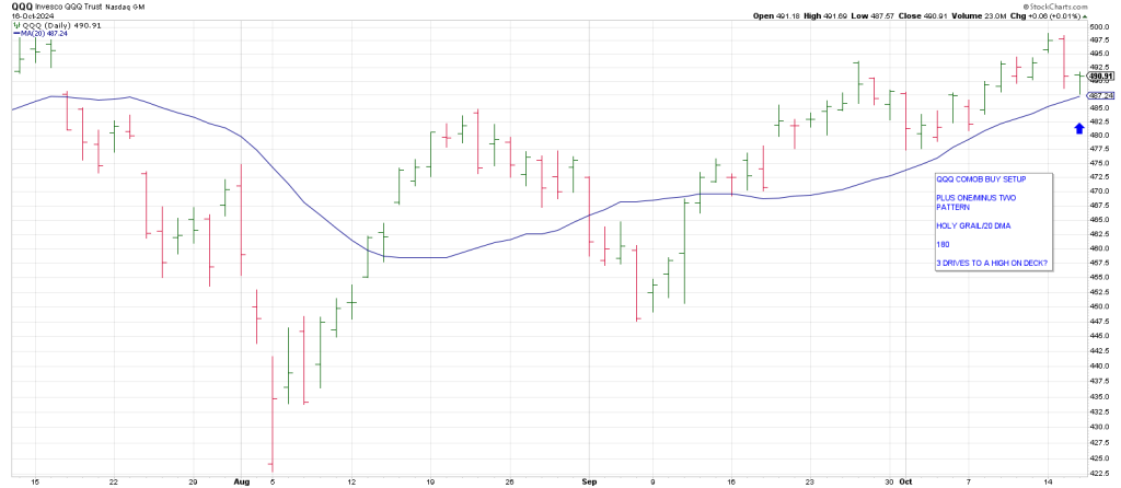 As well QQQ is capitalizing on a Classic Combo setup, a Plus One/Minus Two buy/Holy Grai/180.