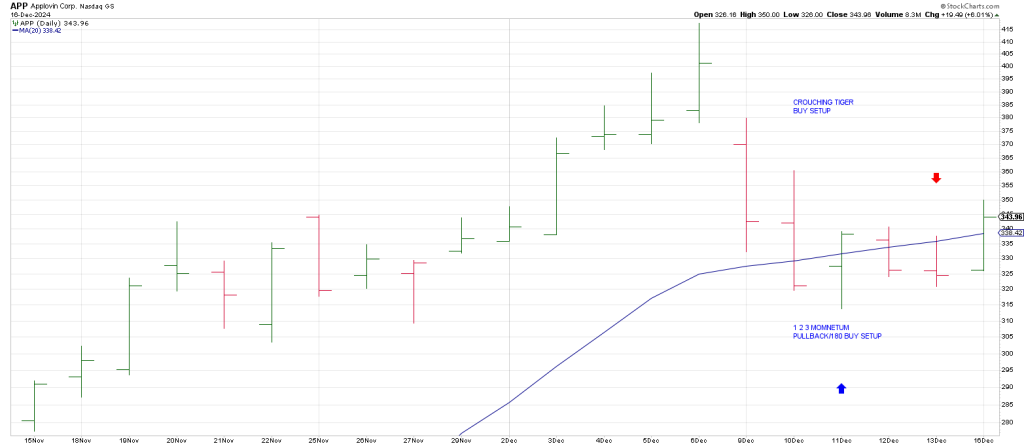APP actually left a Combo buy signal last Wednesday: a 1 2 3 Momentum Pullback and a 180 buy signal.
