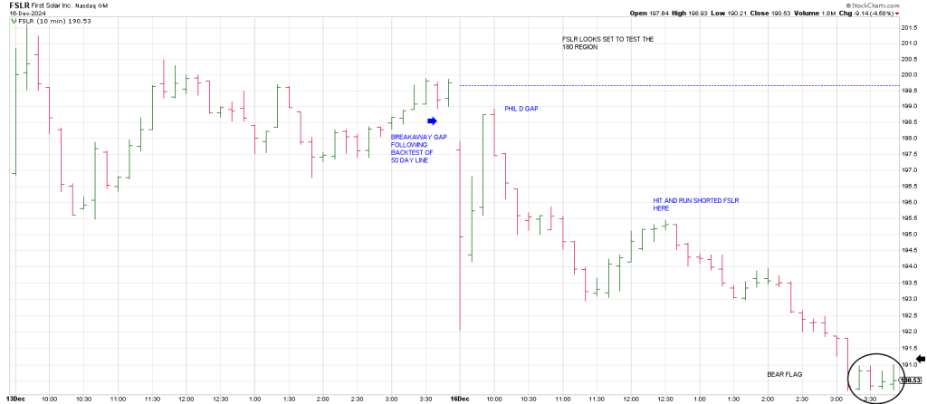 A 10 min TSLA shows Monday’s up-gap followed by a Side Door Entry into Phil D Gap.