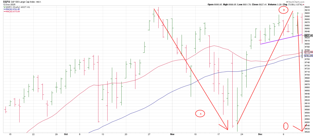 This time frame coincides with the Gann Panic Window, 7 weeks from the October 29 all-time high.