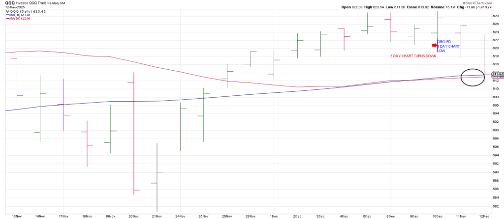 Friday corrected Thursday’s Miss Direction Day—the Q’s closed below the circled 3 Day Chart low.