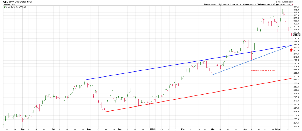 Checking GLD shows continued selling pressure.