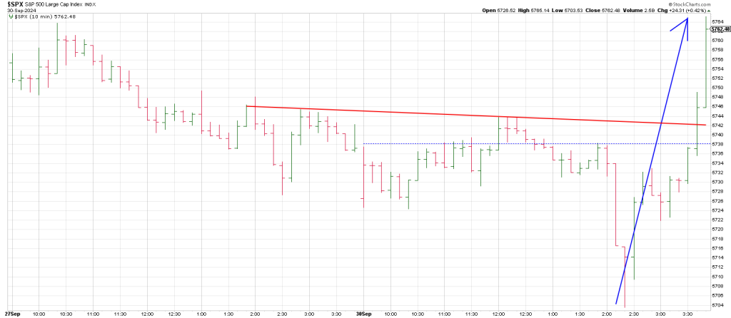 This last minute buying spree pushed the SPX up 62 points in the final 90 minutes on Monday.