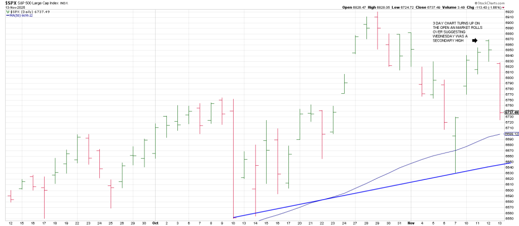 First and foremost, the SPX turned its 3 Day Chart up on Wednesday and knifed lower.