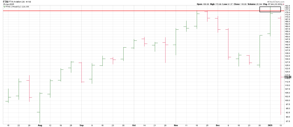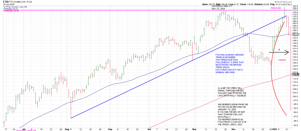 FTAI had already broken trend in early December when it snapped a rising trend line from August (blue) in tandem with breakage below its 50 day line.