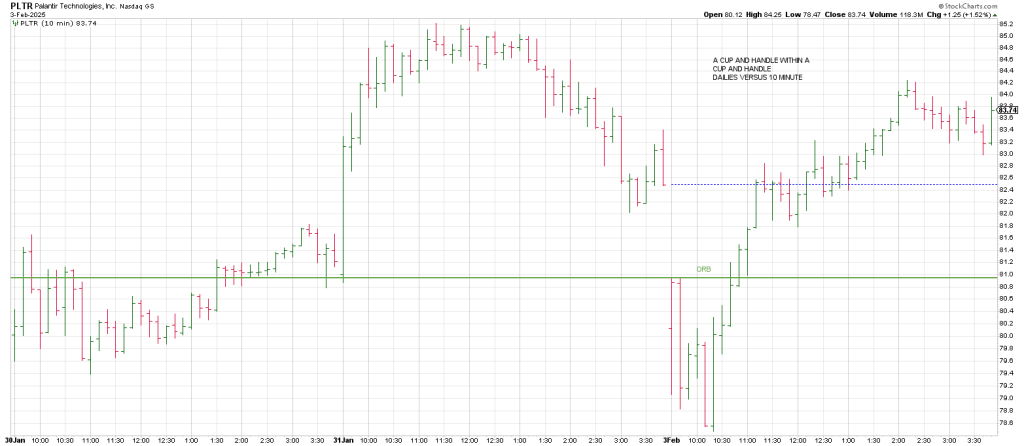 Be that as it may, PLTR struck a opening low, undercut it and rallied like a bat out of hell after triggering an Opening Range Breakout at 80.96.