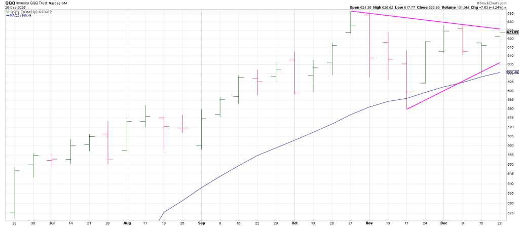 Following the October 29 all-time high, the Q’s turned their 3 Week Chart down.