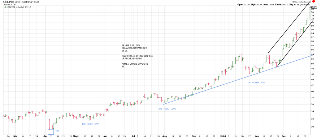 The nature of this square-out is that the parabolic boom and bust in 1929 was 96 years ago and 96 is 180 degrees straight across and opposite December 26.