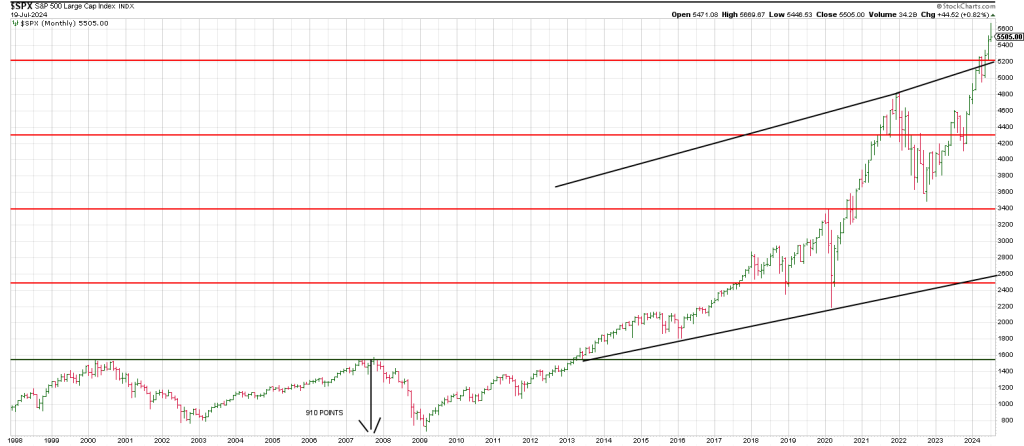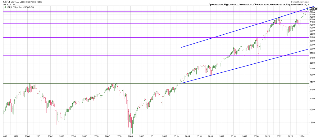 Consequently, in the second half of 2024 the SPX has blown through horizontal resistance and angular resistance (the trend channel).
