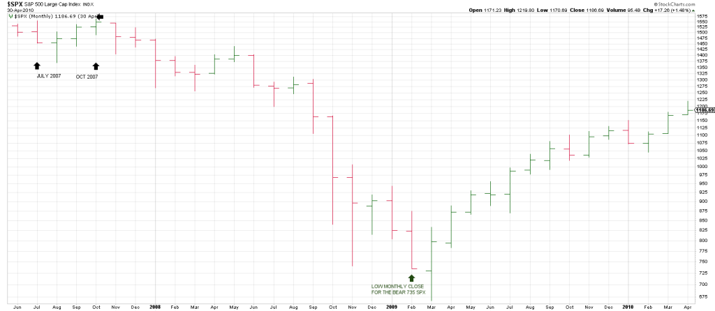 Checking the monthly SPX Swing Chart from the start of the last Primary Bull Market in 2009 shows a low close for the prior Bear Market in February 2009 at 734 SPX.