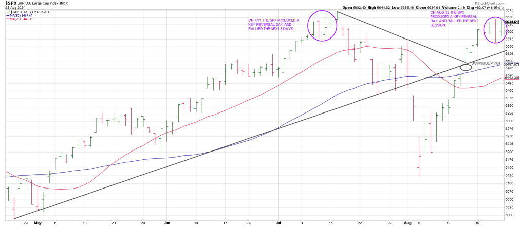 With a long holiday weekend approaching and the price action mirroring the top in July with a rally attempt and top a few days after a Key Reversal Day on July 11th, whatever the reaction is following NVDA’s earnings on Wednesday night, it is likely to produce a trend into the weekend.