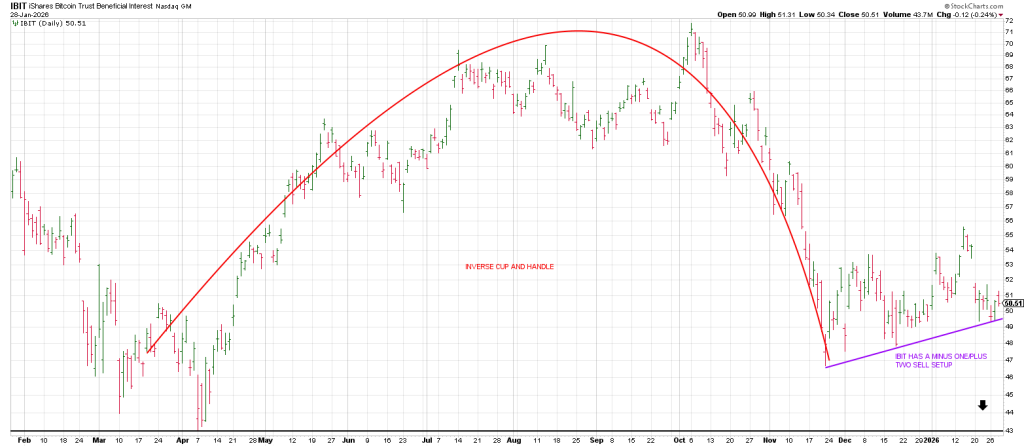 SPX gapped up to a new 60 day high but closed near session lows. As such, it left a Gilligan sell setup.