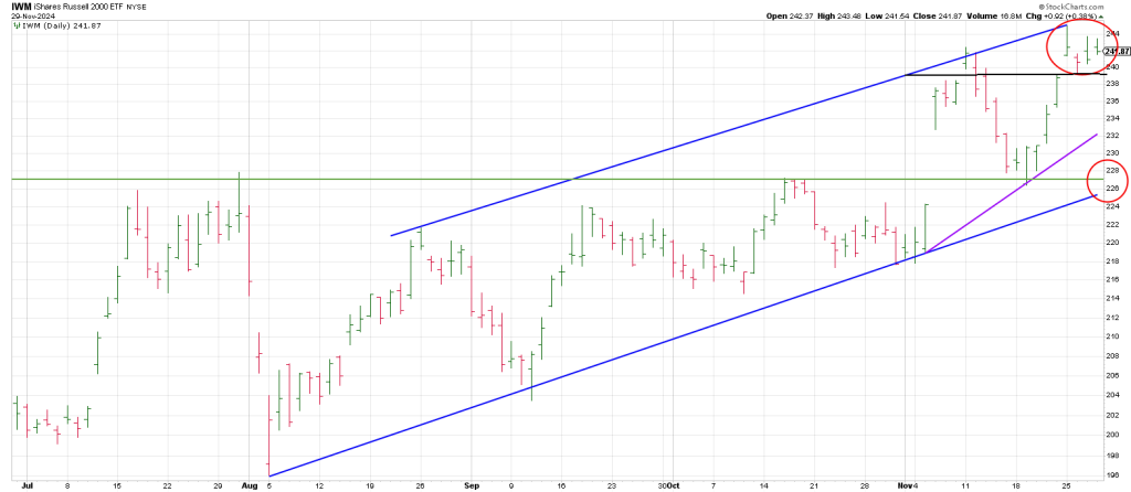 While November saw a large breakout in The Truth Teller, IWM, the dailies left a possible Charlie’s Angels sell setup on Friday.