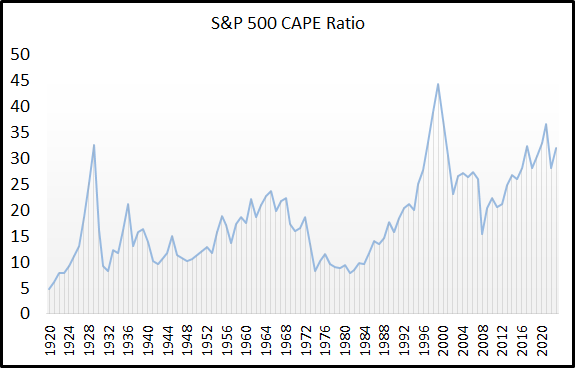 Specifically the cyclically adjusted P/E (CAPE) Shiller ratio indicates a significant overvaluation,