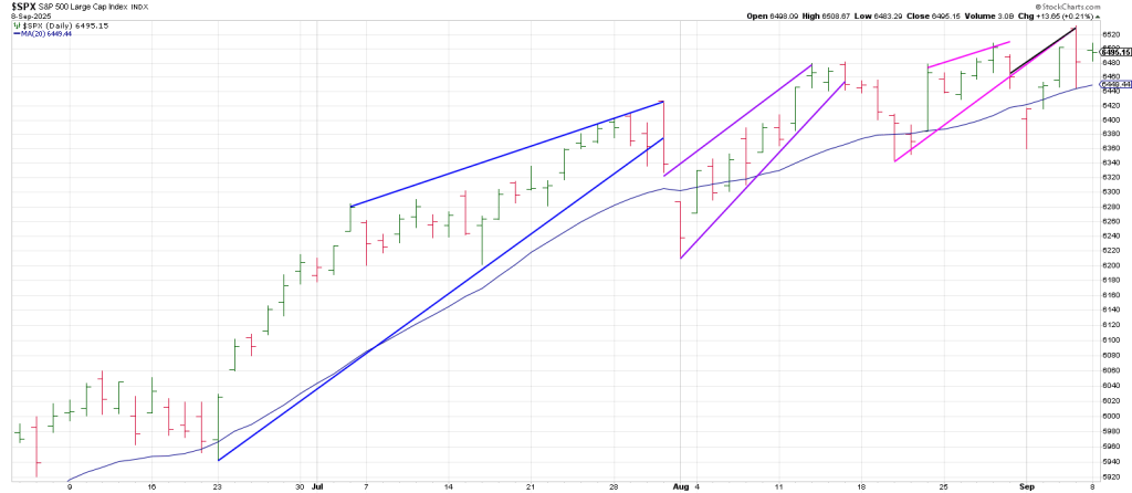 Despite Friday’s all-time high a clean psychological 6500 close on the index scored on August 28th ….splitting the difference between the August 25th, 1987 top and the September 3rd, 1929 top.