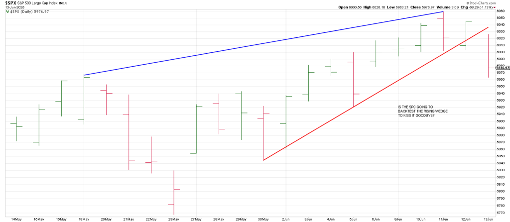 Last week we showed the following SPX showing the plunge below an Ascending Wedge in February and potential for breakage below another Ascending Wedge.