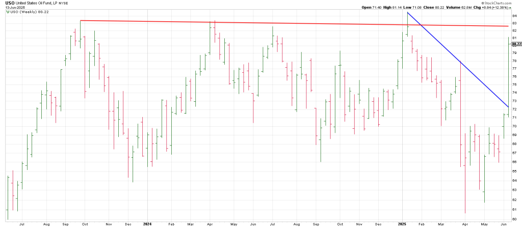 Below is a weekly USO showing the recent breakout and verging on a much larger breakout above 82