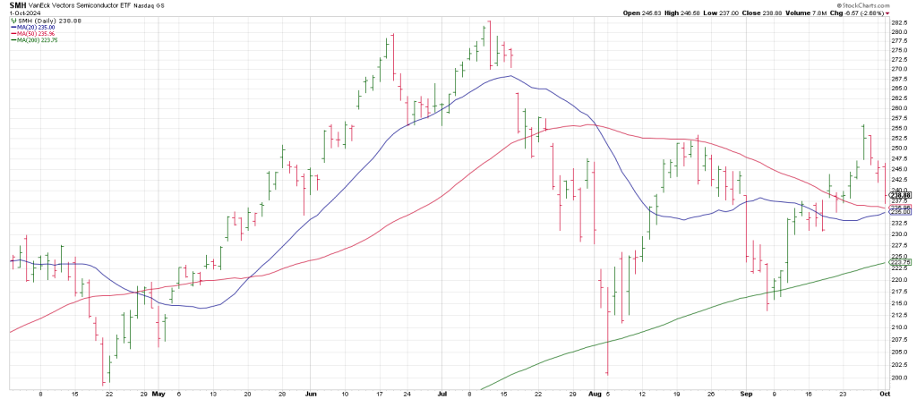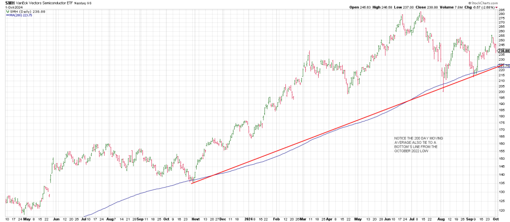 Prior to this summer the last time the leading SMH testing its 200 day was in late October 2023.