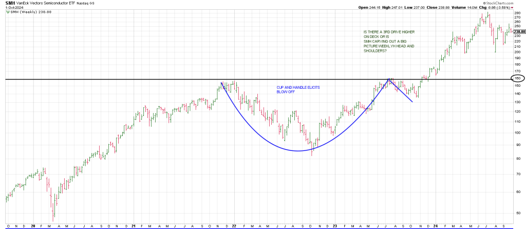 Zooming out to the weeklies, a big picture Cup and Handle elicited a blow-off starting in October 2023.