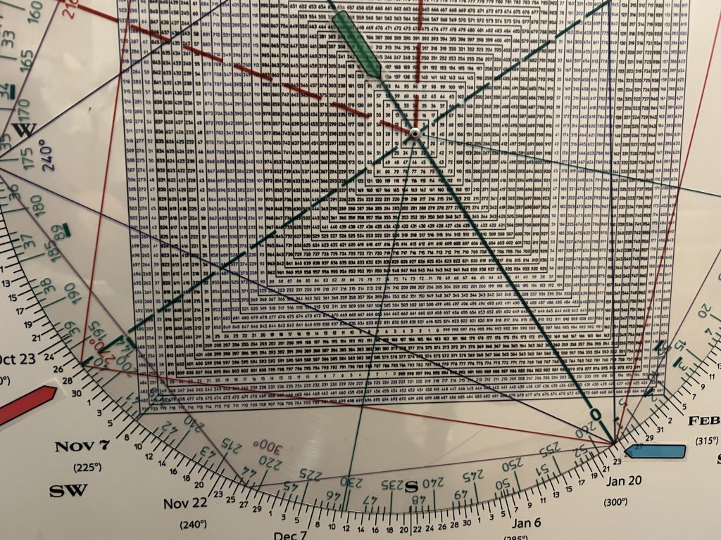 Using the number grid in the middle of the Wheel as “years” instead of price, shows that the year 1987 squares-out with January 24/25 and thereby also squares-out with October 28/29.