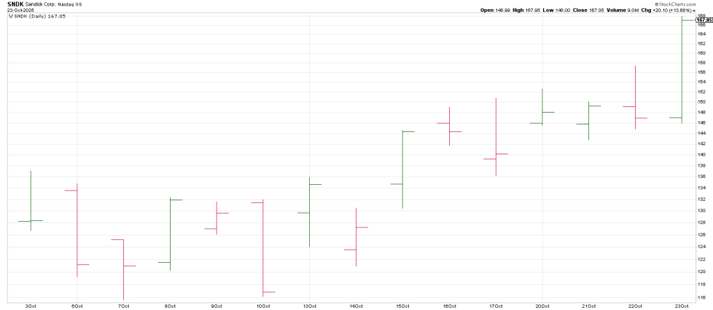Specifically, SNDK left a large range signal reversal bar on Wednesday, opened flat and exploded on Thursday.