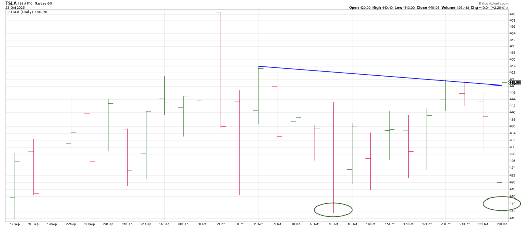 TSLA dropped to test Octobers low of 414 after reporting.