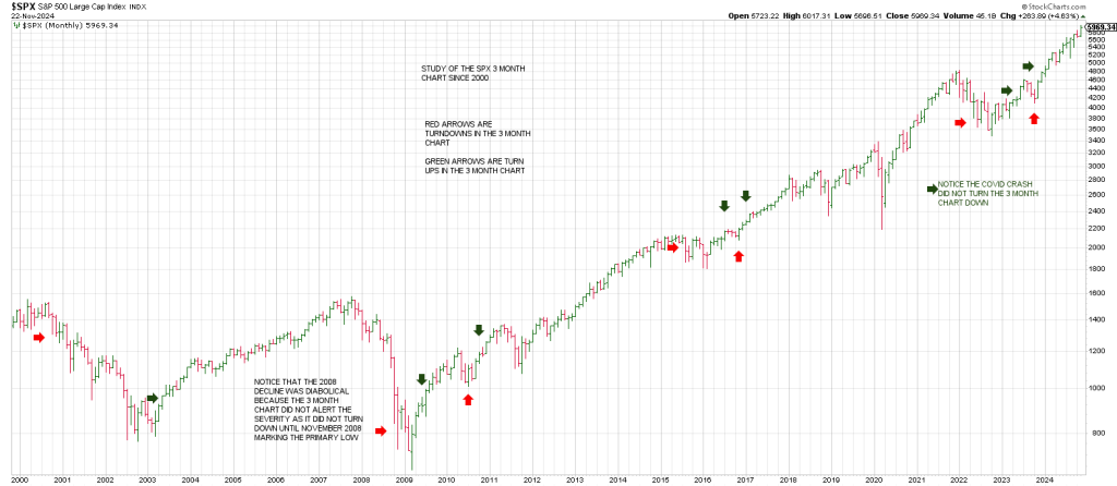 The exception was the decline into the October 2023 low which satisfied a turn down in the 3 Month Chart with 3 consecutive lower monthly lows.