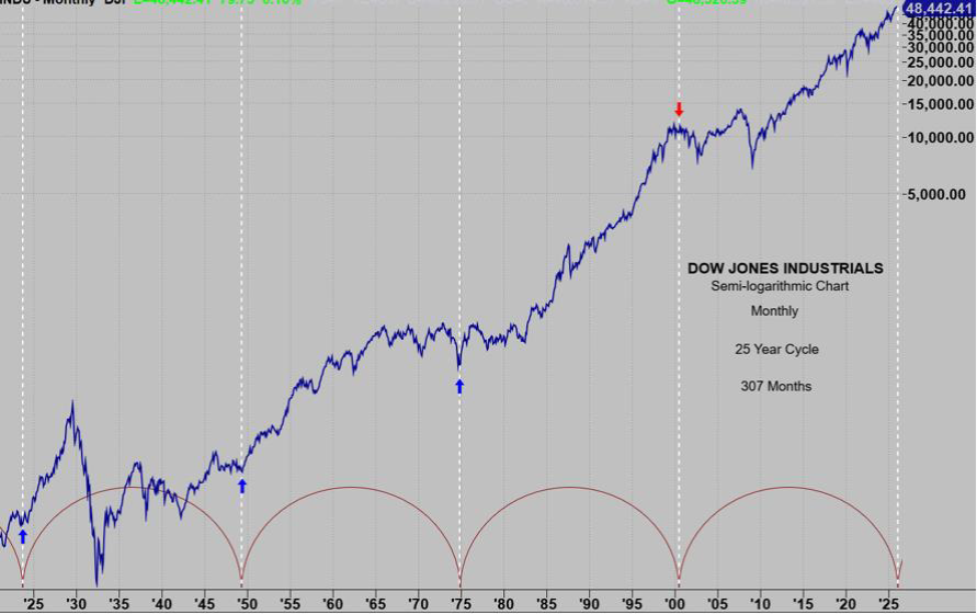 Note that the 2009 low was the beginning of our current 17 year cycle advance. What is the ‘time’ target year for the top of this advance? 2026!