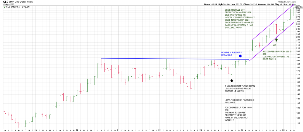 Since the Rule of 4 Breakout in March 2024 GLD has turned its monthly chart down only once. That was in November 2024. This is the very embodiment of a runaway move.