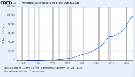 5—- The total of all debt (government, business and consumer) in the U.S. is now well over 100 trillion dollars.