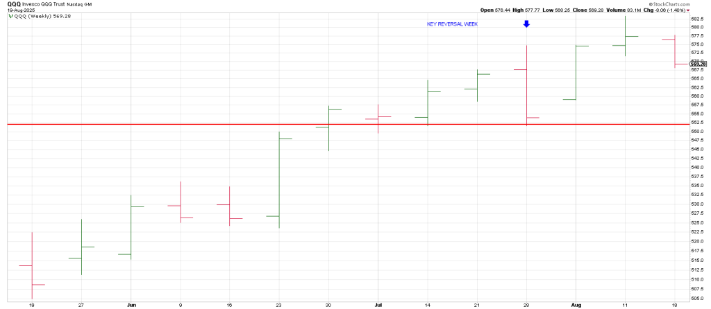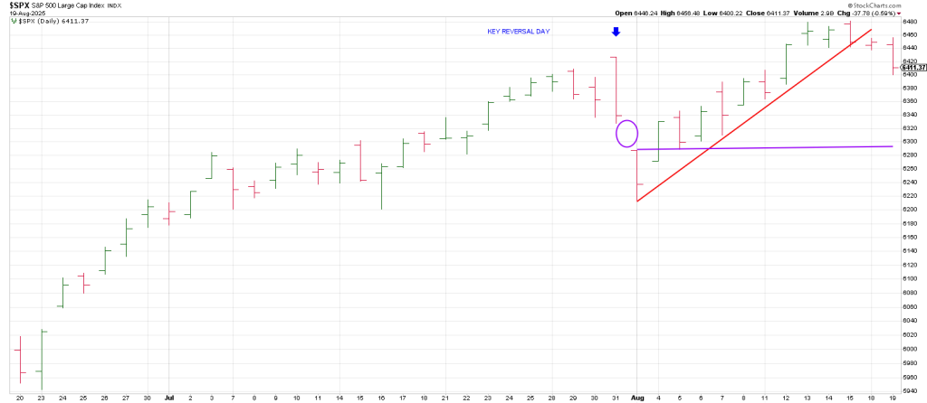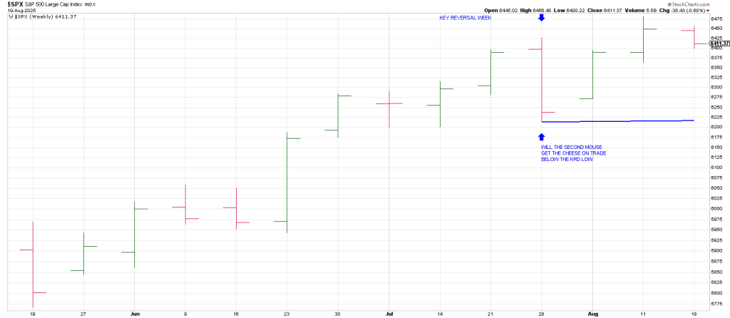 Most of the smart traders I speak to say that the Key Reversal week at the end of July 2025 was a “failed signal”. A blaring buy siren. Clearly the SPX never followed thru to the downside.