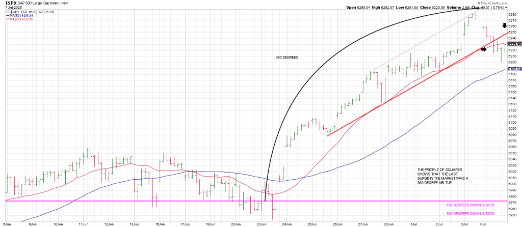 4) The SPX satisfied a 90 degree drop from high. This is 6205