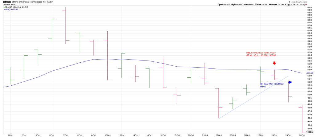 It left a Minus One/Plus Two sell setup on October 27 as well as a Holy Grail (20 DMA backtest).