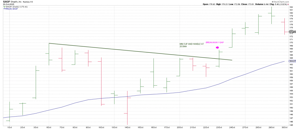 SHOP was a long Hit and Run trade in October triggered by a Rule of 4 setup in combo with a mini Cup an Handle.