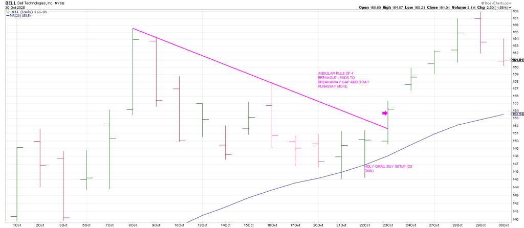 DELL was a long setup for subs triggered by an Angular Rule of 4 setup followed by a Breakaway Gap