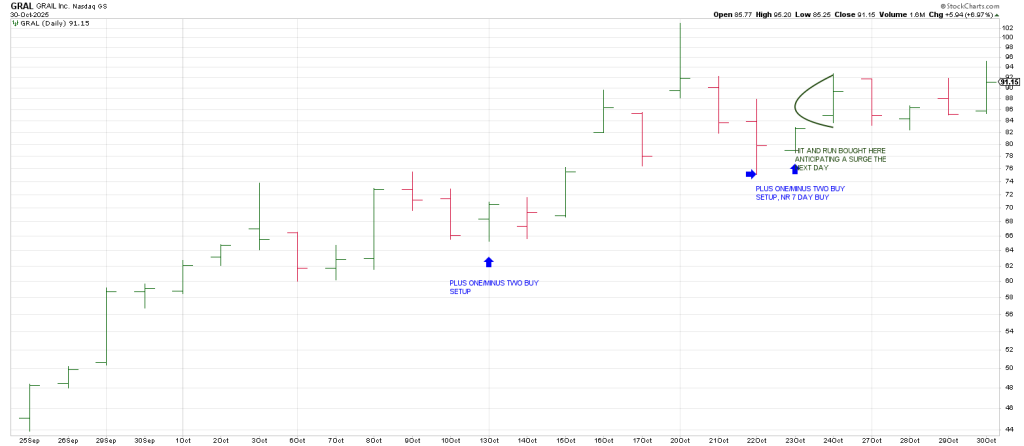 GRAL, below, shows two Plus One/Minus Two buy setups.