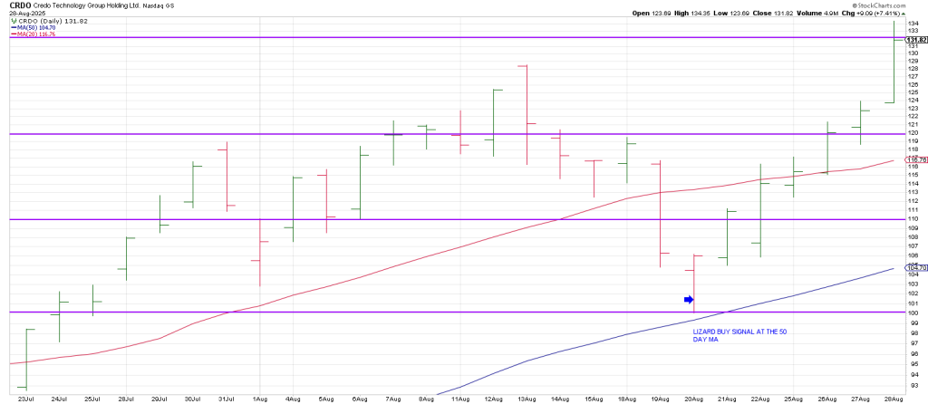 In clearing the August 13 reversal high of 128 yesterday, CRDO triggered a Reversal of a Reversal or what I call a Keyser Soze continuation signal.