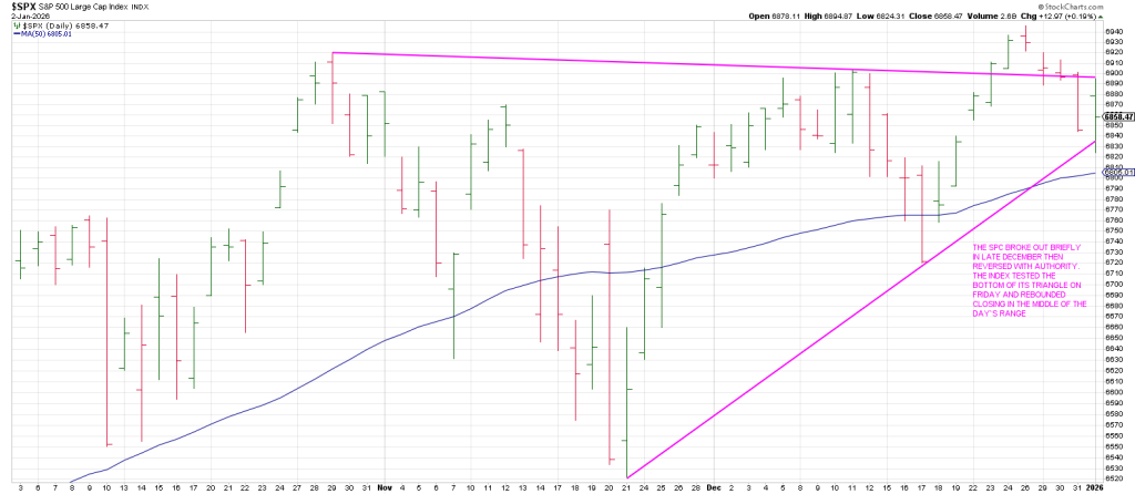 This is because the SPX briefly broke out above the triangle in late December and quickly reversed with authority.