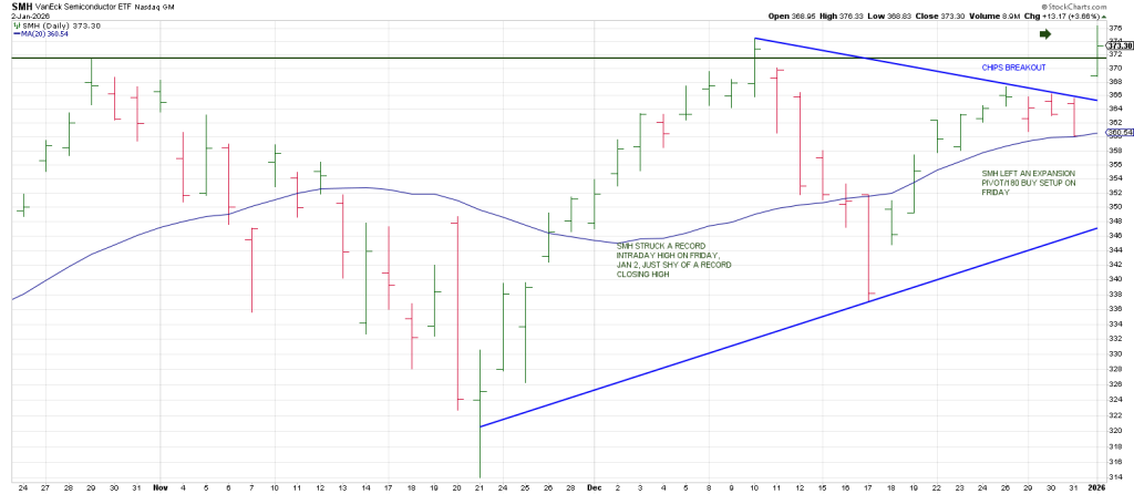 SMH broke out to an all-time intraday high on Friday just shy of a closing all-time high.