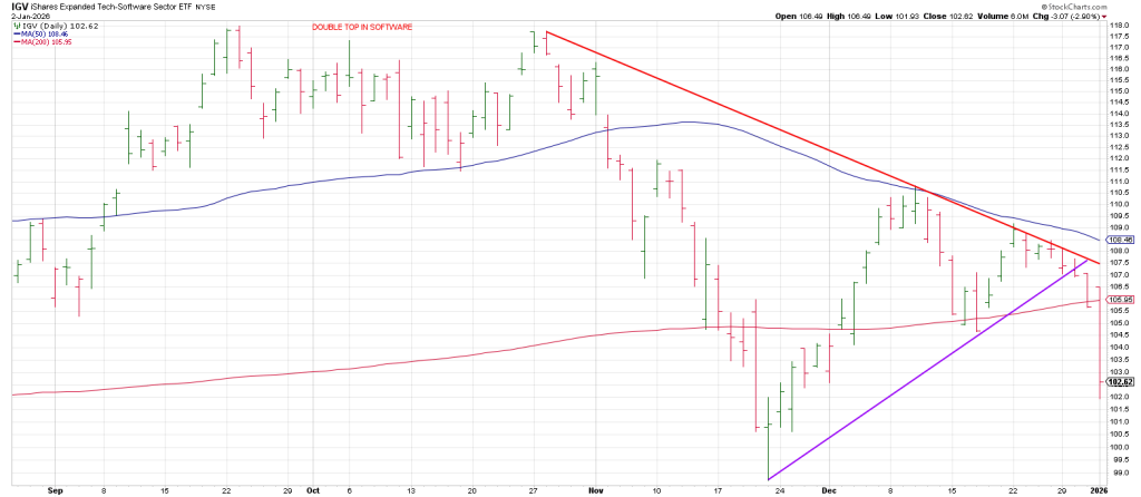Underpinning the tension on the tape is the fractured behavior in tech between the chips and software stocks…SMH and IGV.
