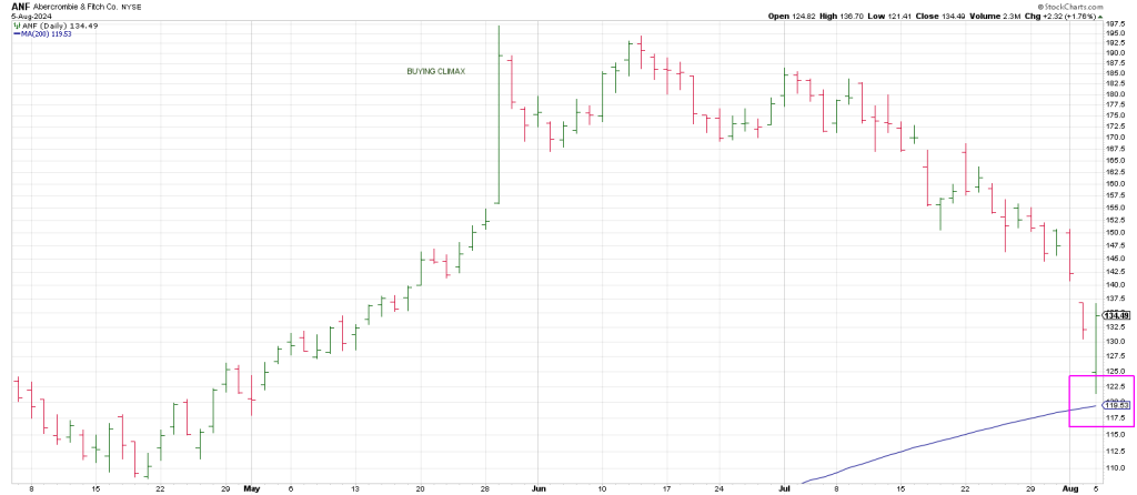 ANF opened gaped down, skidded to its 200 day and reversed with authority leaving a Hit and Run Gilligan buy signal. This is a gap down to a new 60 day low with a close at/near session highs.