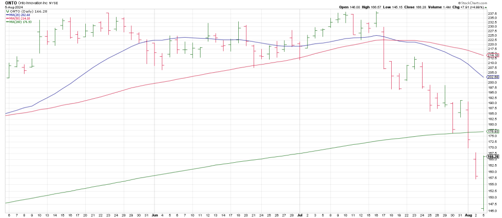 ONTO gapped down 12 and reversed sharply also leaving a large range Gilligan buy signal.
