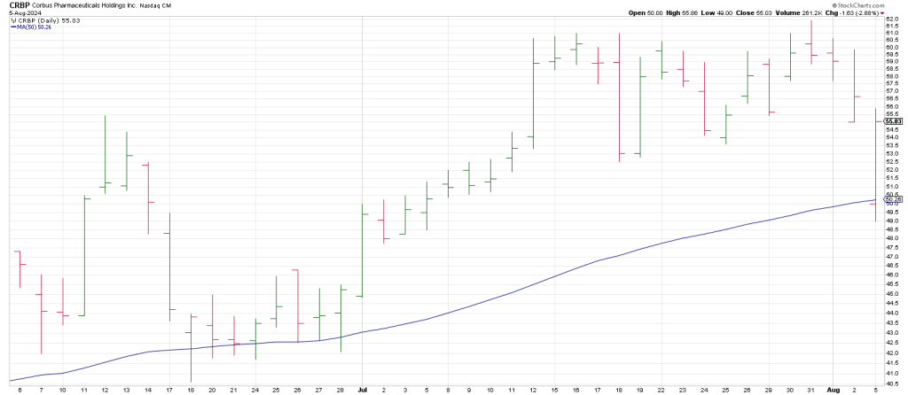 Early Monday Hit and Run took one our favorite biotechs CRBP long as it tested its 50 day line.