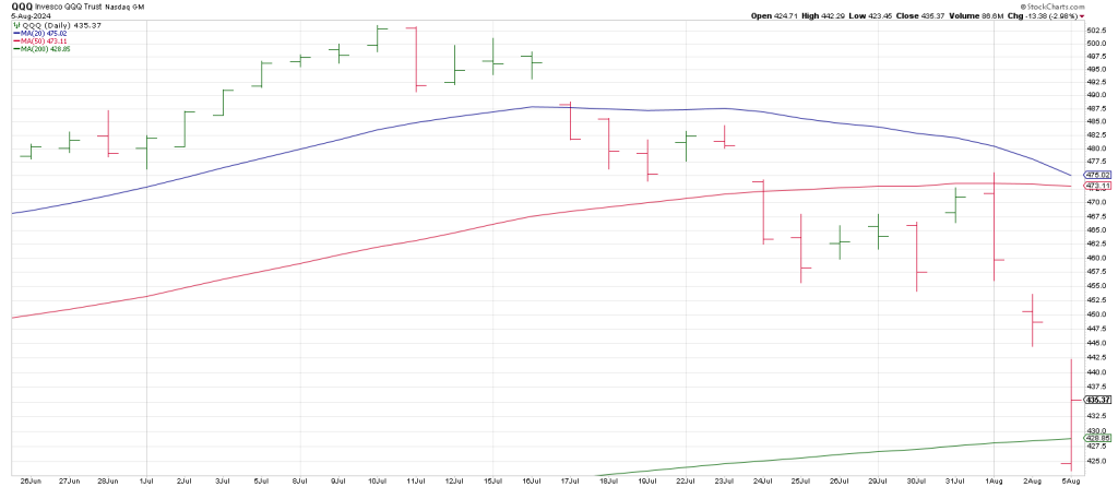 So why did the Q’s “come up short of the idealized 418 level, instead rebounding off a low of 423 on Monday?